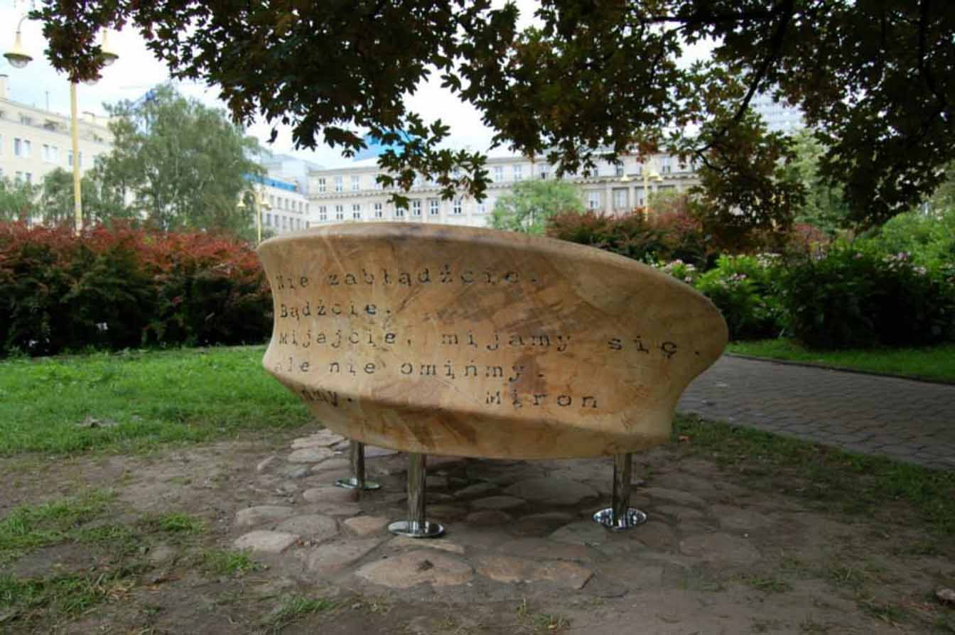 W czerwcu 2013 roku udało się odsłonić mniej monumentalne założenie – ławeczkę, upamiętniającą mieszkającego w pobliżu Mirona Białoszewskiego.
