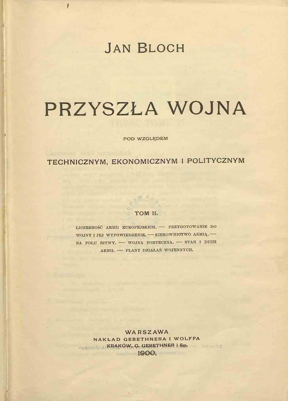 W latach 1893-1898 powstaje siedmiotomowe, antywojenne dzieło, „Przyszła wojna pod względem technicznym, ekonomicznym i politycznym”, w której zawarł i bronił tezy, iż wskutek postępu techniki, wojny nie mają sensu – prowadzą bowiem do całkowitego wyniszczenia społeczeństw.