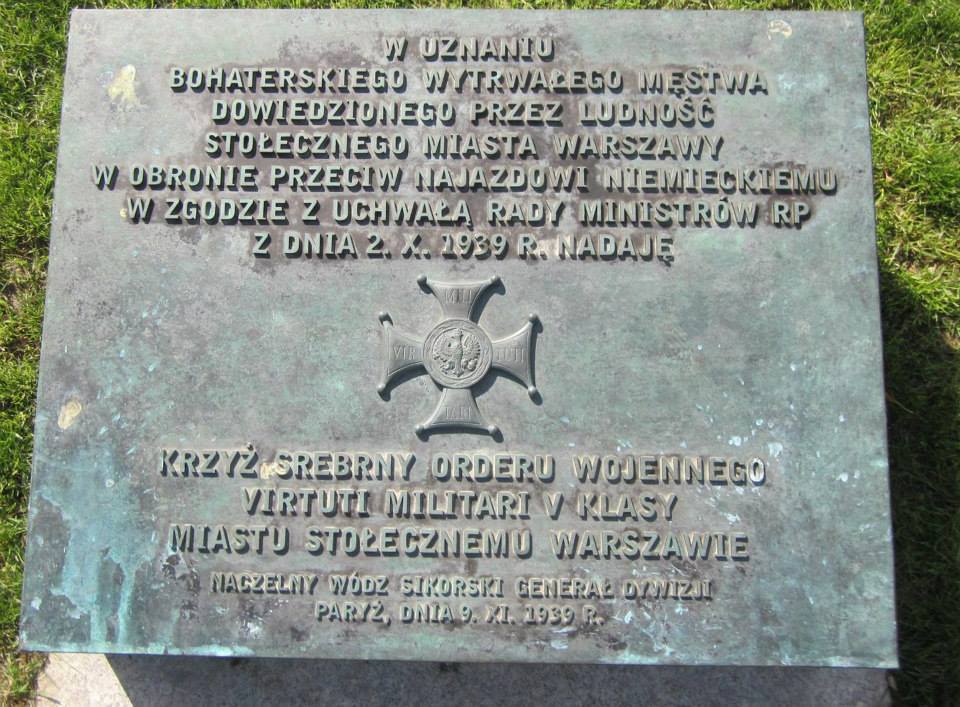 (…)w uznaniu bohaterskiego, wytrwałego męstwa dowiedzionego przez ludność stołecznego miasta Warszawy w obronie przeciw najazdowi niemieckiemu. (…)