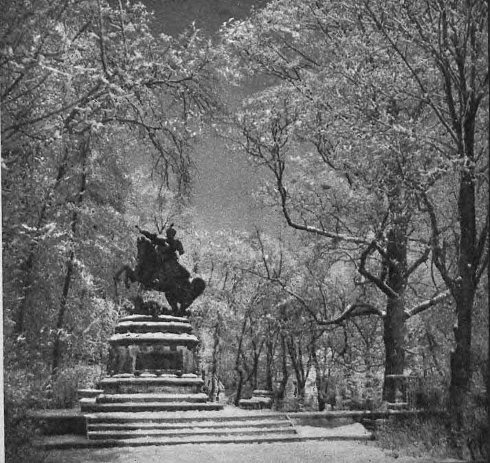 Pomnik króla Jana III Sobieskiego w wilanowskim parku. Rok 1962