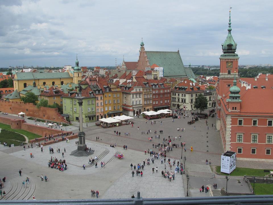 Widok Placu Zamkowego z wieży kościoła Świętej Anny. Na bruku widoczne zaznaczenie dawnego przebiegu murów oraz bramy.