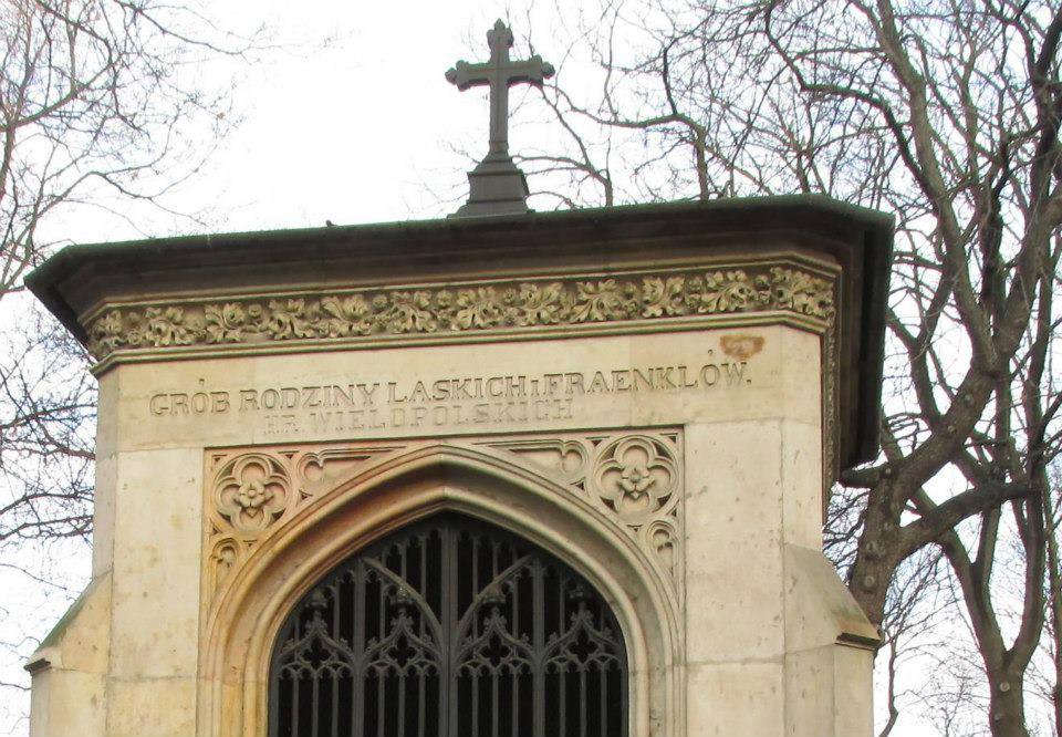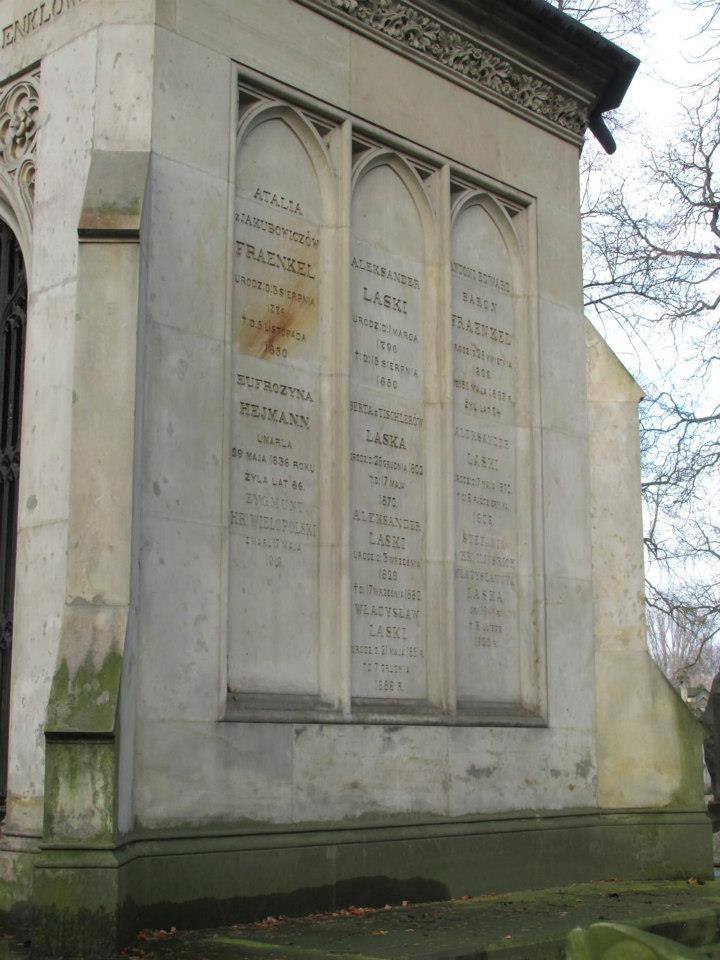 Kaplica Laskich i Fraenklów powstała w połowie XIX wieku i była pierwszą kaplicą zbudowaną na Cmentarzu Powązkowskim. Autor i zleceniodawca projektu jest nieznany.
