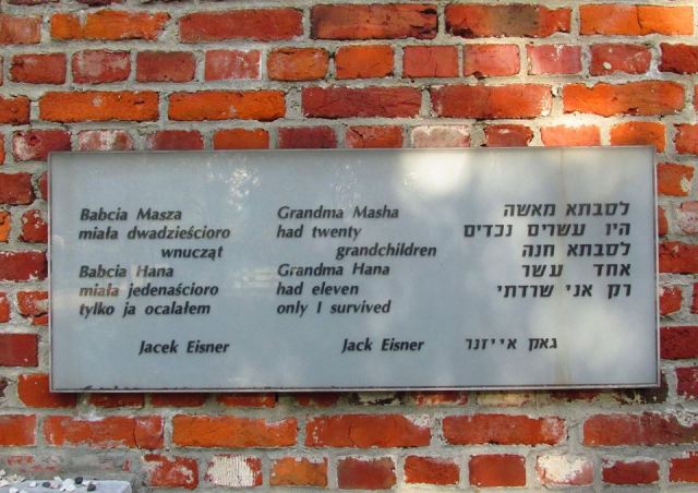 Obok pomnika umieszczono tablicę upamiętniającą Jacka Eisnera i Dawida „Dudka” Landaua, żołnierzy Żydowskiego Związku Wojskowego. Tablice ufundowały ich rodziny.