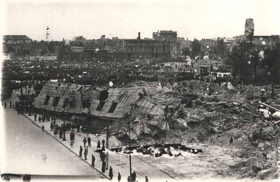 Ruiny pałacu Brühla w 1945 roku, Zbiór otwarty fotografii XX wieku. http://www.warszawa.ap.gov.pl