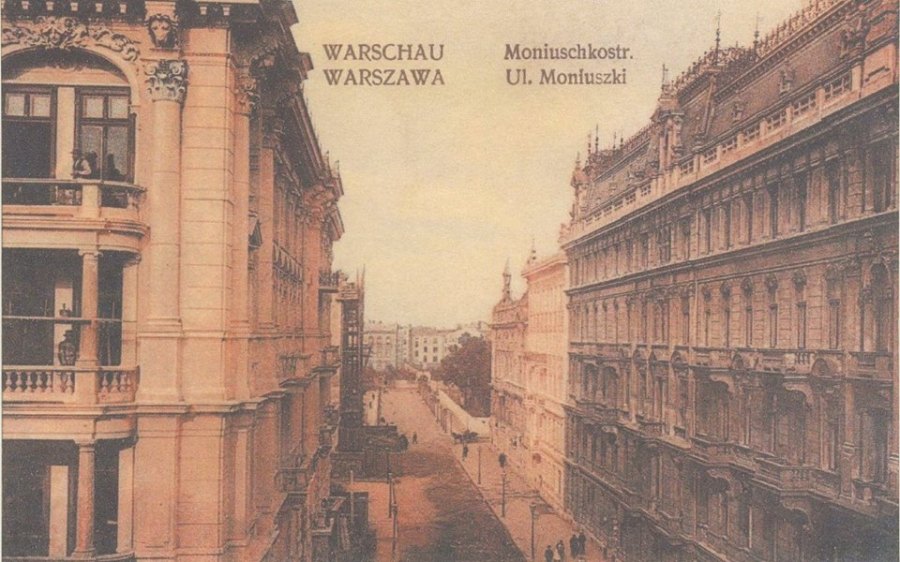 Ulica Moniuszki w drugiej dekadzie XX wieku. Poprawiona w programie graficznym jakość obrazu.