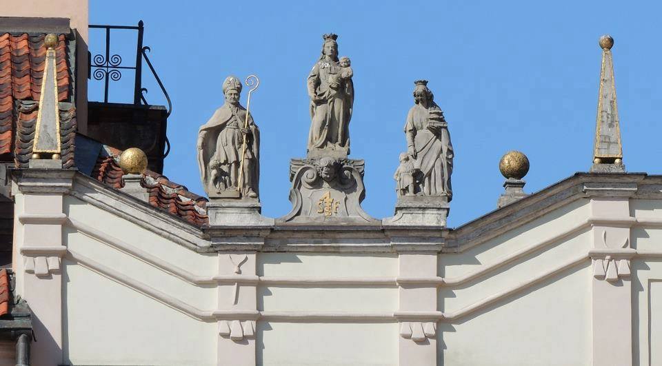 Rynek Starego Miasta 28 – attyka Kamienicy Falkiewiczowskiej.