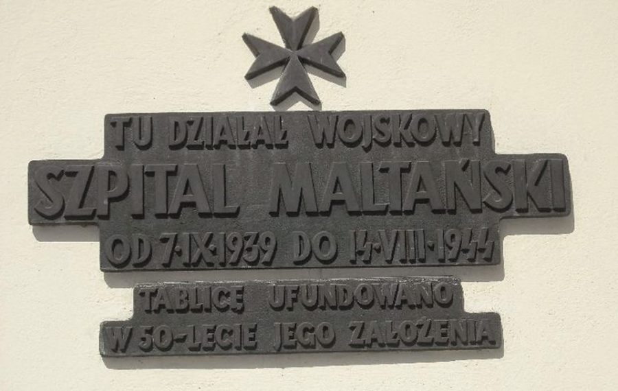 Pałac Mniszchów. W czasie niemieckiej okupacji mieścił się w budynku Szpital Maltański. Tablica pamiątkowa na ścianie budynku.
