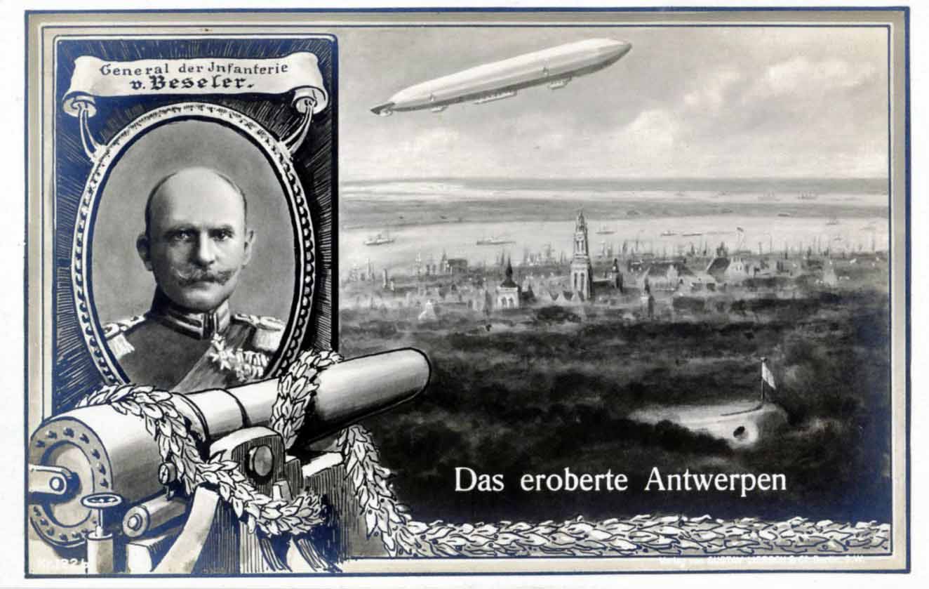 Hans Hartwig von Beseler na niemieciej pocztówce wydanej z okazji zdobycia Antwerpii.