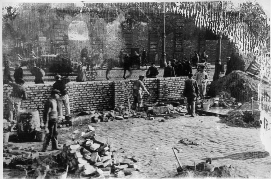 Wylot Grzybowskiej na Graniczną. Widoczne ruiny budynku Graniczna nr 2.