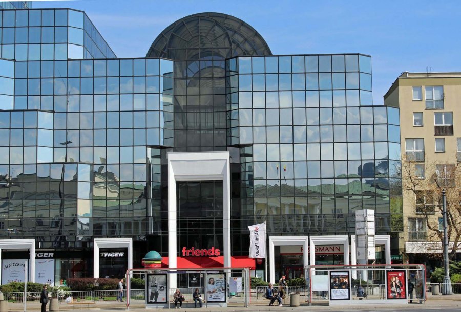 W bryłę wieżowca, w miejscu, gdzie stała Wielka Synagoga, wkomponowano kształt macew (nagrobków).