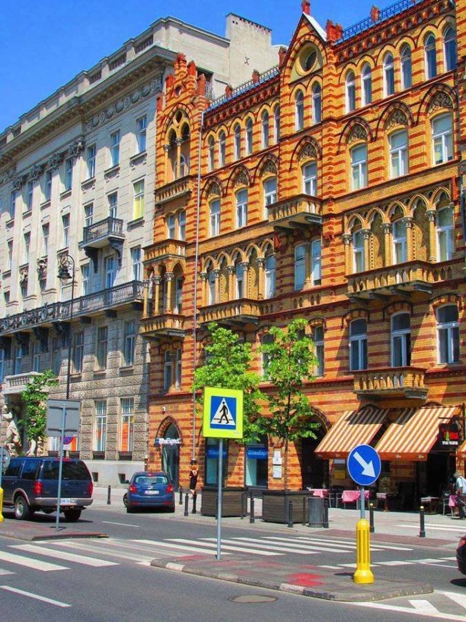 Efektowna kamienica Władysława Ławrynowicza. Właz widoczny przy dolnej krawędzi zdjęcia.