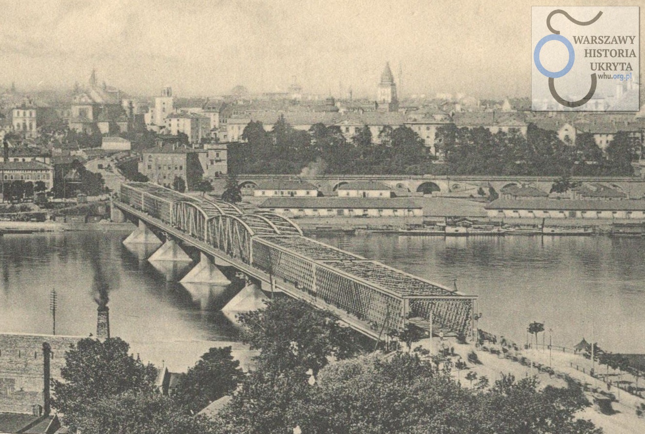5 sierpnia 1915 około godz. 6 rano dwa środkowe przęsła mostu zostały wysadzone przez wycofujące się z Warszawy wojska rosyjskie. Na pocztówce most już odbudowany. Widać dwie wyróżniające się kratownice o parabolicznym kształcie.