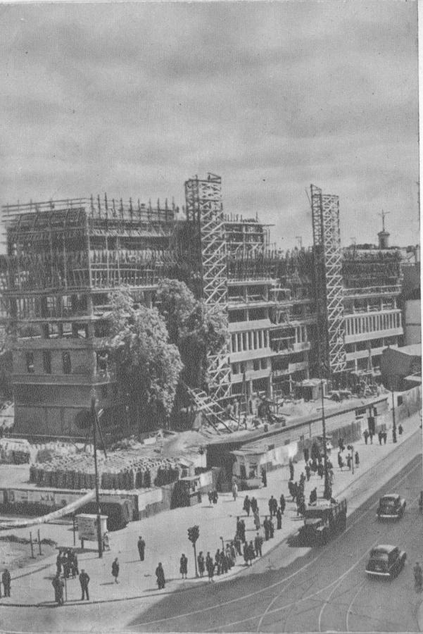 Opis oryginalny: Zespół gmachów wspólnego Domu Polskiej Zjednoczonej Partii Robotniczej w stdium budowy.