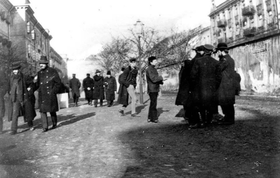 Więźniowie na spacerze około roku 1905.