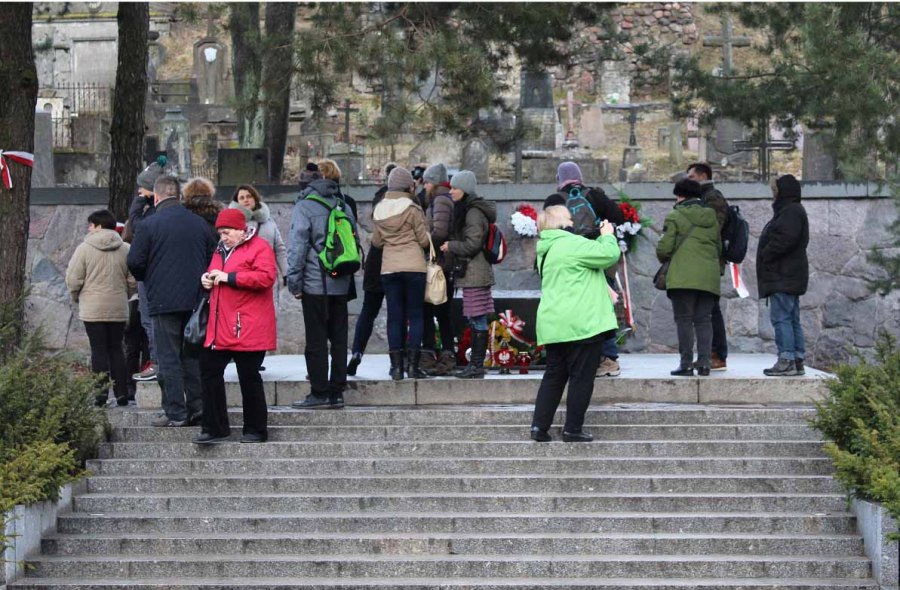Przed miejscem spoczynku serca marszałka Józefa Piłsudeskiego. Cmentarz w Wilnie na Rossie.(Litwa).