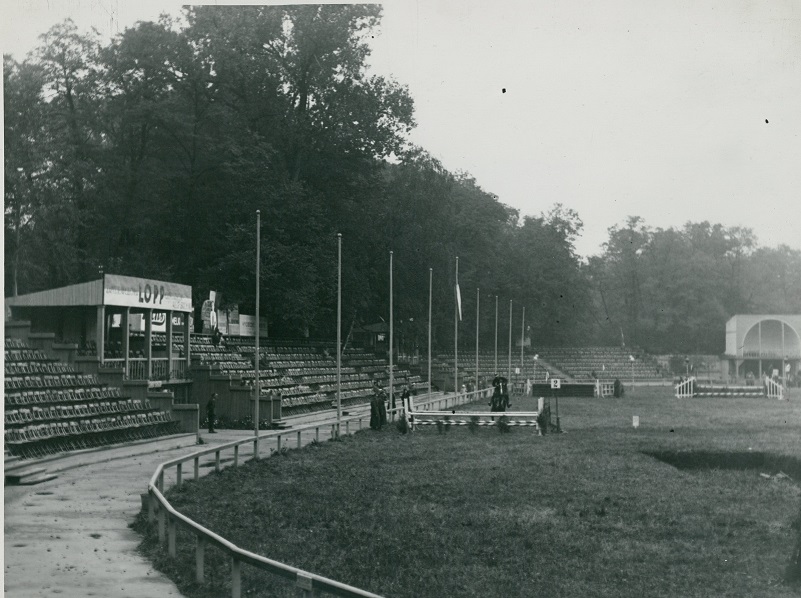 Obelisk upamiętniający zawody jeździeckie w Łazienkach.
