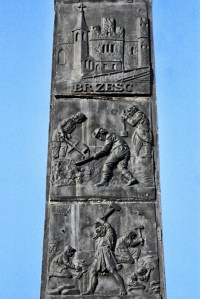 Pomnik, z przedstawieniami upamiętniającymi trud robotników budujących drogę w kierunku Brześcia stoi do dzisiaj przy ulicy Grochowskiej.