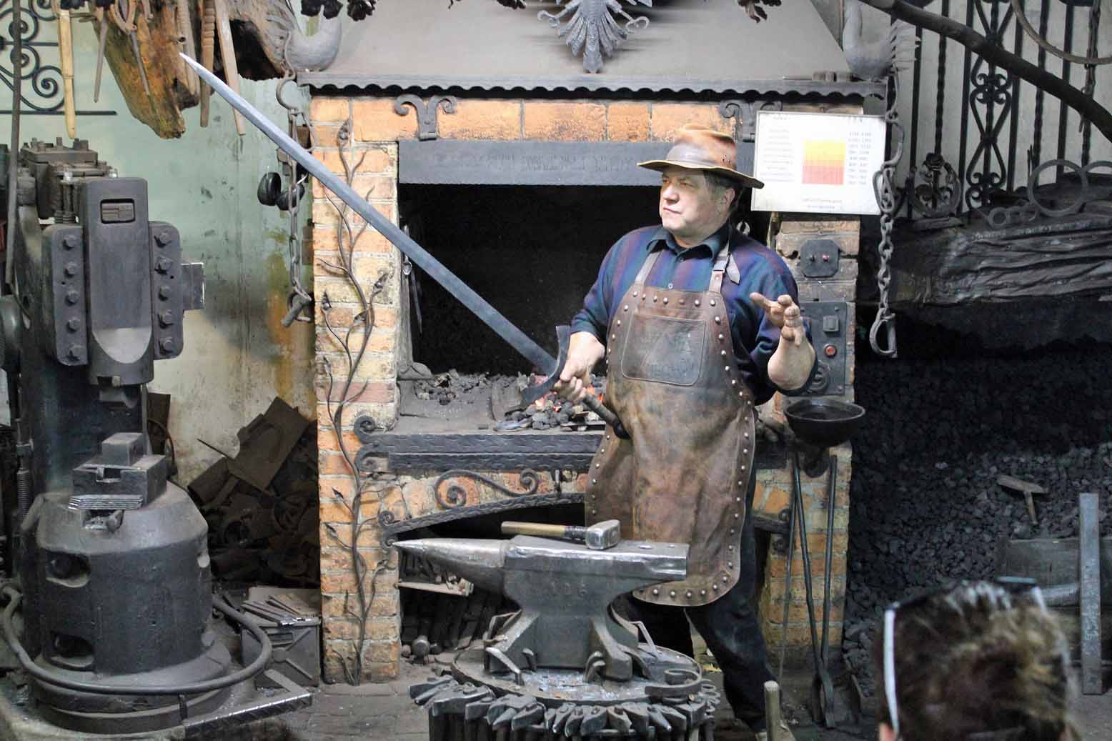 Prezes Stowarzyszenia Kowali Polskich Pan Roman Czerniec. Wojciechów. . Kuźnia w rękach jego rodziny pozostaje od roku 1920.
