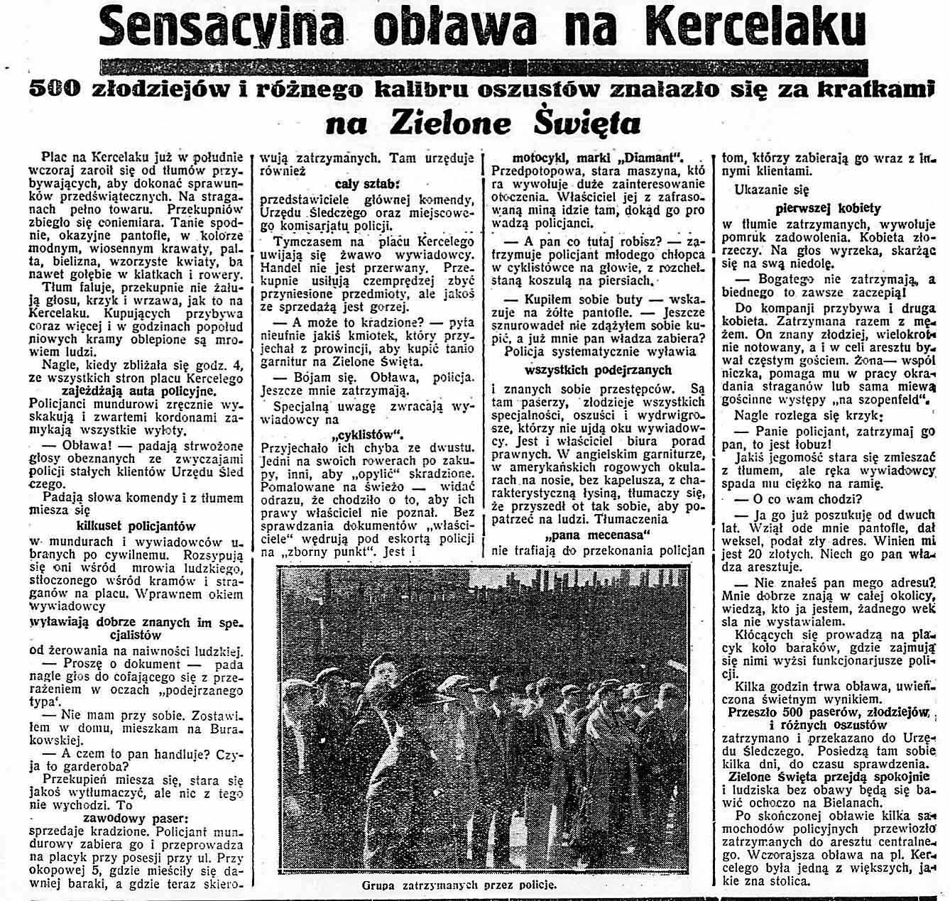 W sobotę, 8 czerwca 1935, policja przeprowadziła obławę przeciwko handlującym cudzą własnością. Już następnego dnia gazeta „Dzień dobry” raportowała o wynikach obławy. Zatrzymano pięćset osób podejrzanych o kradzieże i oszustwa.