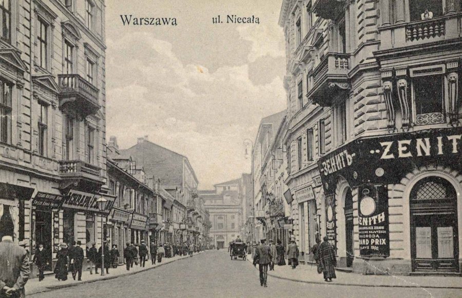 Ulica Niecała.Widok od strony placu Saskie. Widoczna na zdjęciach zabudowa nie przetrwała II Wojny Światowej.