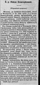 Sam Roman Szewczykowski jest postacią nadzwyczaj interesującą i pod koniec wieku XIX nie było mieszkańca Warszawy nieznającego jego nazwiska.