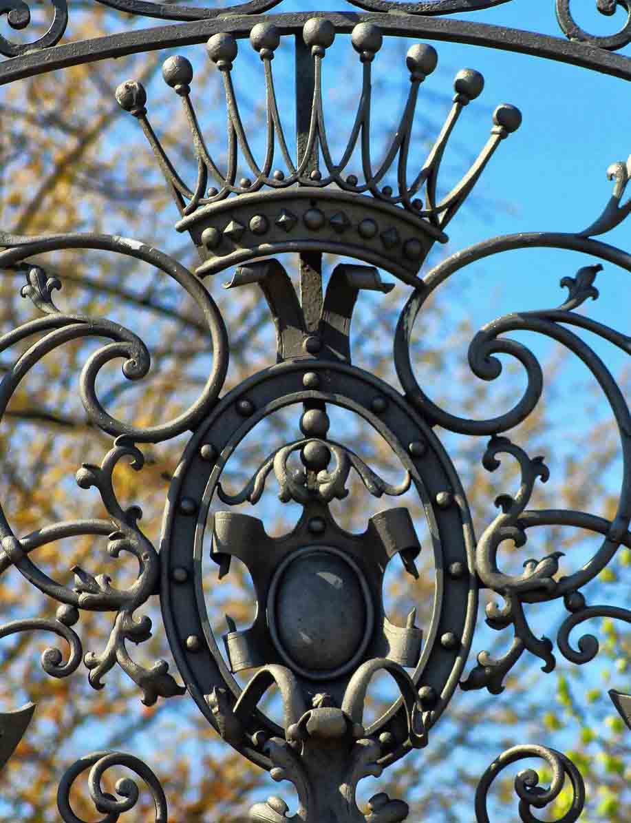 Jak wspomniałem wcześniej, elementem wyróżniającym tę bramę pośród innych bram jest korona hrabiowska umieszczona nad skrzydłami bramy oraz finezyjnie wykute zdobienia.