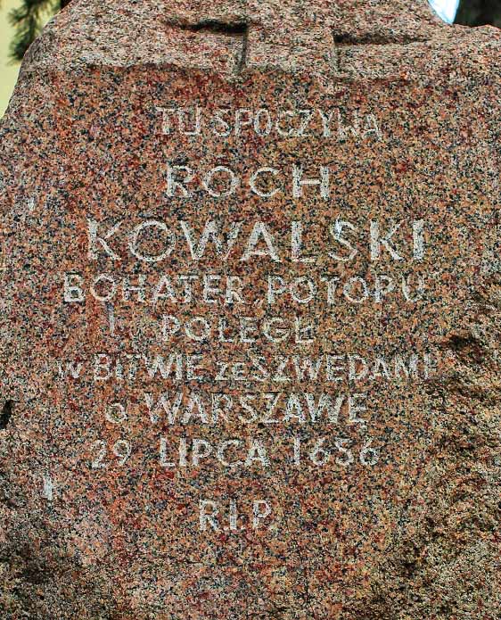 Tu spoczywa Roch Kowalski/bohater «Potopu»/Poległ w bitwie ze Szwedami o Warszawę/29 lipca 1656 r.