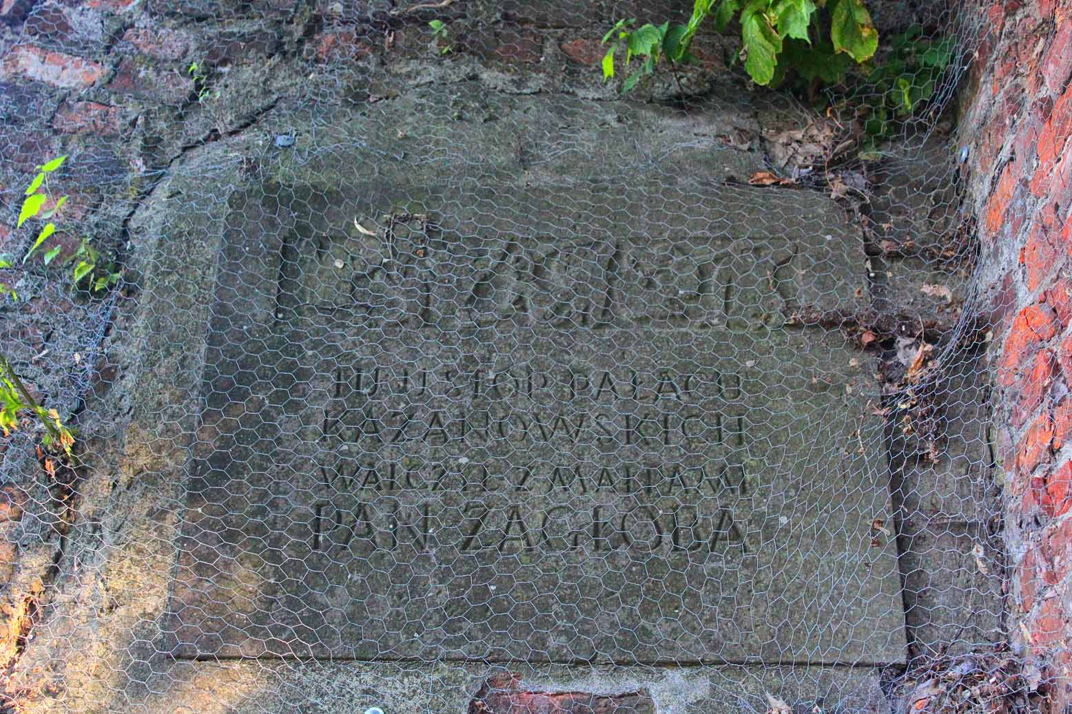 Na murze oporowym dawnego pałacu Kazanowskich znajdziemy tablicę odnoszącą się do zdarzenia o którym Onufry Zagłoba chciałby zapomnieć. To tu autora niezwykłych konceptów zaatakowały małpy.