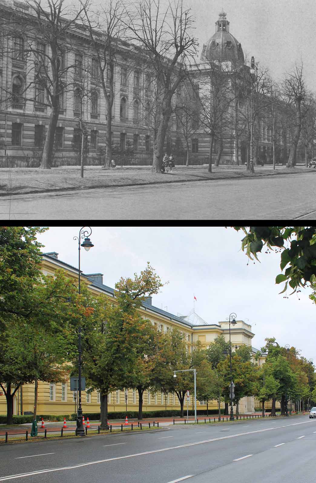 Zdjęcie wykonane w okresie 1926 – 1939 oraz stan obecny. Zdjęcie archiwalne w zbiorach NAC.