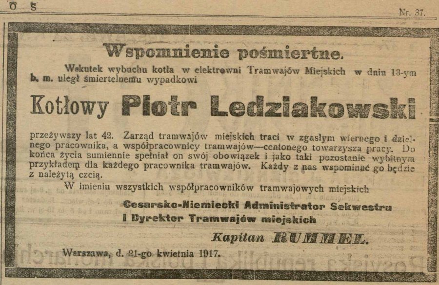 Nekrolog Piotra Ledziakowkiego opublikowany w gazecie Czas